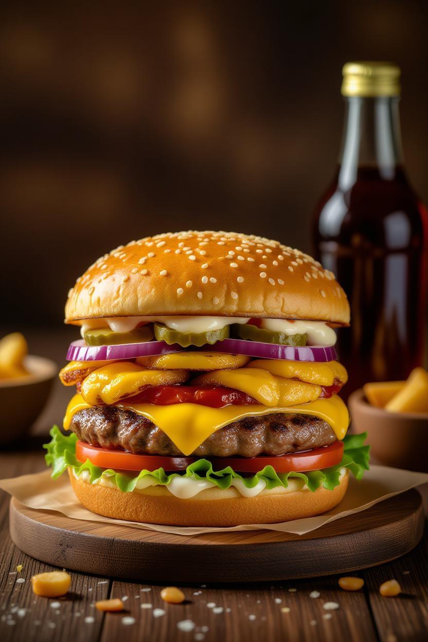 Pão, maionese, milho, ervilha, tomate, alface, 2x carne, cebola, 2x ovo, geleia de pimenta, presunto e queijo.