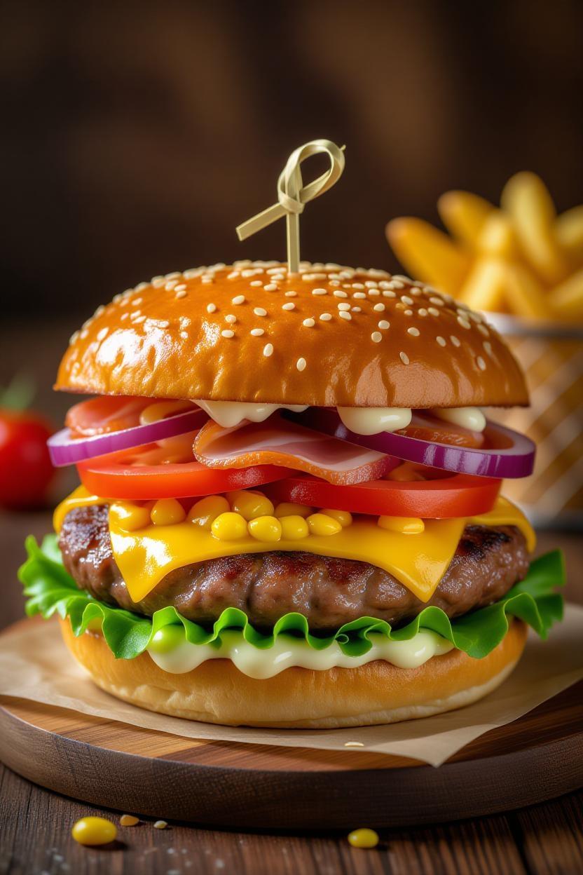 Pão, maionese, milho, ervilha, tomate, alface, calabresa, bacon, cubo de carne, frango, cebola, pimentão, ovo, presunto e queijo.