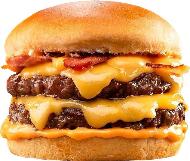 Pão, maionese, barbecue, bacon, 2x carne 100g, 2x cheddar ou mussarela, cebola e pimentão refogados.